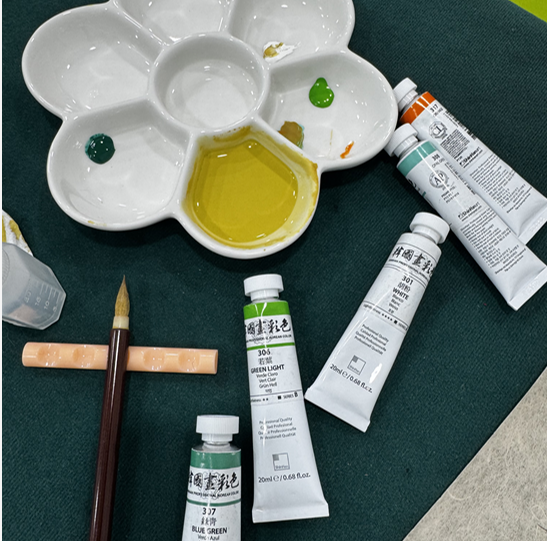 - 동양화 물감을 다양하게 섞어 조색합니다.